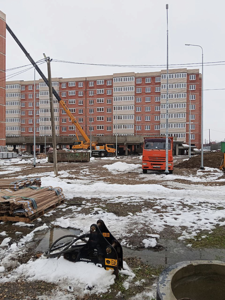 Построены котельные. Выполнены работы по устройству внутридворового освещения. Ведутся работы по монтажу электрики, устройству стояков и систем поквартирного отопления.